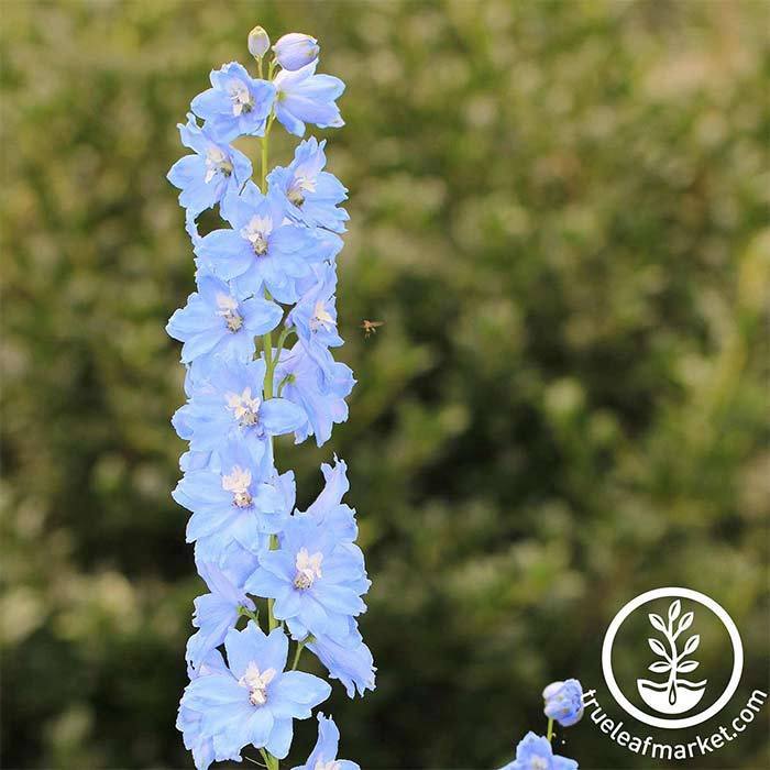 • Sow Indoors or Outdoors: Delphiniums are known to be a challenging grow and best started indoors 10 – 12 weeks prior to the frost. Pacific Giant Series seeds will germinate in 7 – 14 days with full lighting then place seedlings under a grow light and harden off to an equally sunny spot either in the garden or indoors. Starts may require early staking that must be readjusted as plant matures.