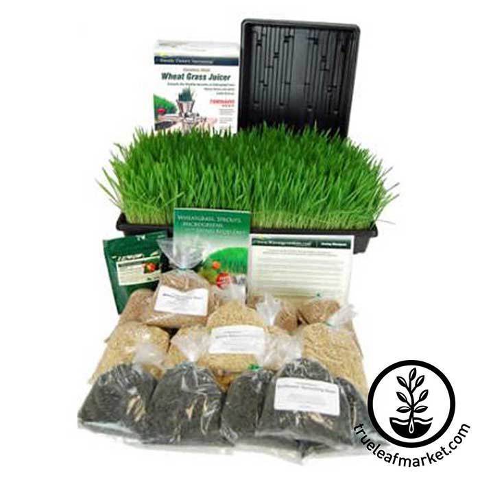 Grow and juice your own wheatgrass, barley grass, & sunflower microgreens for just pennies a day. Kit includes soil, seed, trays, Tornado (aka Back to Basics) manual juicer, azomite, instructions, & more. A great starter kit. Certified Organic Seeds.