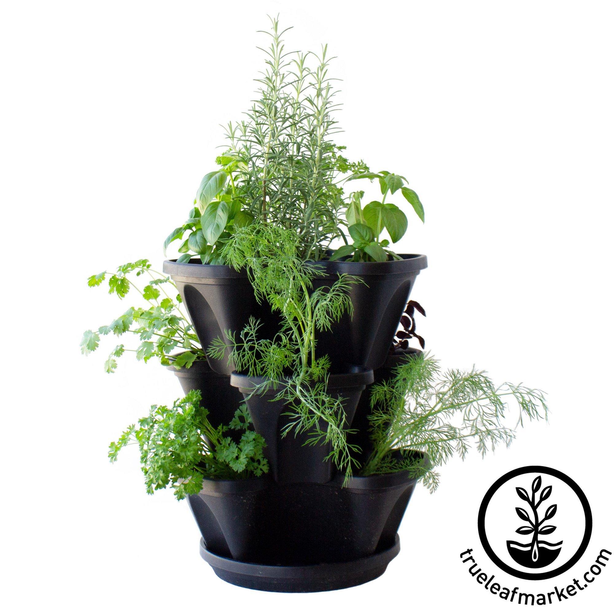 - Mini Garden Stacker Planter - A self-watering hangable or stackable garden planter - Holds 12 or more plants - 11" Diameter x 2' Tall - Includes Hanging Chain