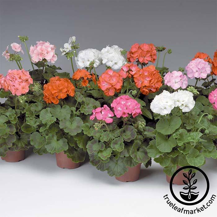 91 – 105 days. Pinto Premium Series geranium seeds promise some of the most classic yet nevertheless eye-catching blooms available to gardeners and florists alike. Pinto Premium Series enormous 4 – 5” wide clusters of timeless geranium heads are the perfect accent to any office, bedroom, or fresh cut arrangement. Pinto Premium Series geranium seeds are ideal for 6” pots and containers so they can be shown off outdoors yet stored safely inside before the frost. Pinto Premium Series geraniums are easy to grow from seed and known to thrive in a variety of poor soils and gardens prone to heat and drought. 100 seeds.