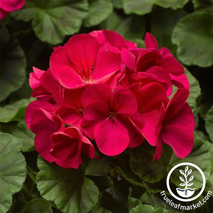 Pinto Premium Series geranium seeds can be sown directly after the frost but, for earliest spring blooming, begin indoors 8 – 10 weeks prior. Geraniums can be quick to germinate between 5 – 7 days without any need of light. Geraniums are just as popular indoors as they are out and many gardeners will transplant the seedlings into moveable pots to store the plants away for winter. Plant 2 – 3 Pinto Premium Series geranium seeds ¼” deep and 12” apart in organically rich, medium moist, and well-drained soil in full sun to partial shade. Pinto Premium Series geraniums are known to perform in poor soils and gardens prone to heat and drought. Deadhead plants into the summer to promote further blooming. Avoid overwatering because plants are susceptible to mold, root rot, and leaf spots if not properly drained or ventilated. Watch for caterpillars on outdoors plants and aphids and whiteflies on indoor ones. Pinto Premium Series seeds mature in 91 – 105 days as 12 – 18” tall mounding uprights with a 12” spread and enormous 4 – 5” clusters of classic geranium blooms.