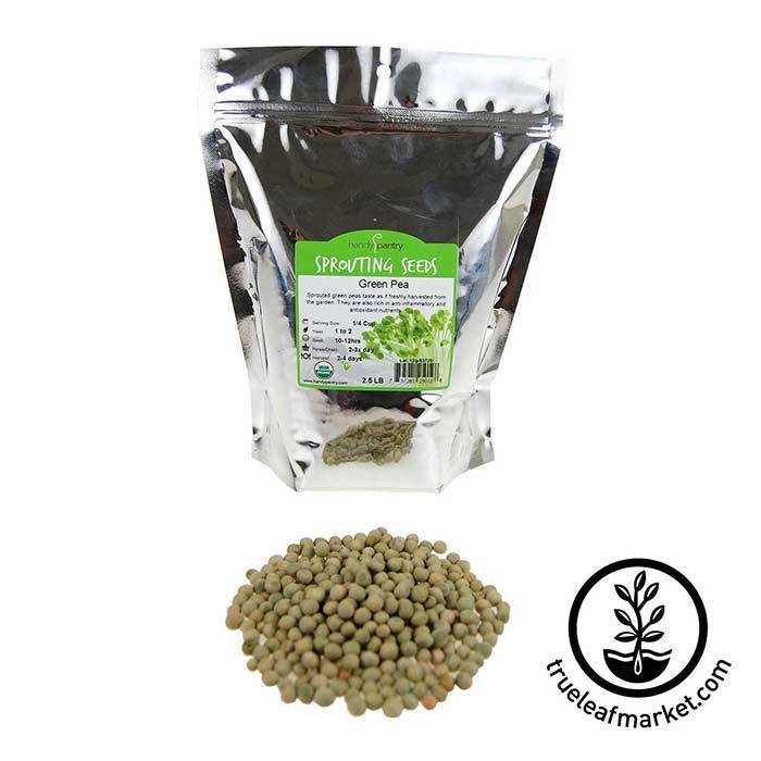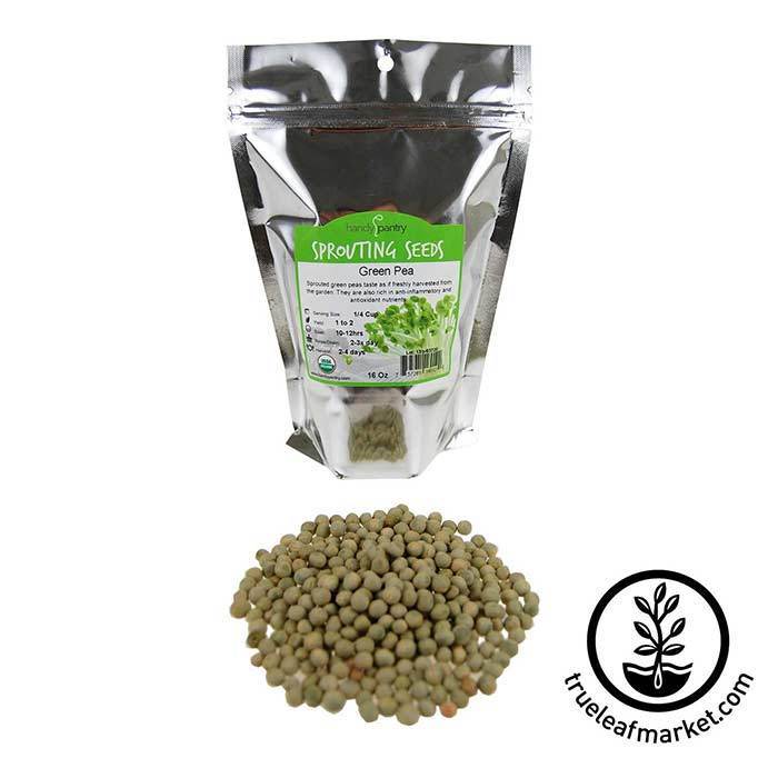 Organic Green Peas are Perfect for sprouting, gardening, soup, food storage & more. These organic green pea seeds have a high germination rate and have been microbial tested. Organic Green Pea seed sprout well using the jar method, tray method or by using the sprout sack! Green pea sprouts have a delightful sweet flavor with a nice crunch. They make an interesting addition to soups and salads.