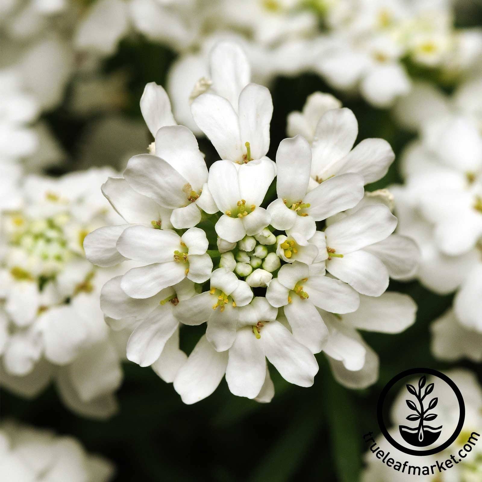 2nd Year Maturity. Whiteout Candytuft seeds promise a year round touch of southern Europe and the Mediterranean in your home and garden. Iberis is easy to grow from seed and a delicate favorite for fresh cut arrangements, baskets, and bouquets. Whiteout Candytuft seeds grow hardy branching 6 – 12” tall iberis plants with elegant clusters of leafy, papery blooms in vivid alpine white. Whiteout iberis seeds grow cool-hardy evergreens that thrive perennially in a variety of temperate and moderate winters across North America. 100 seeds.
