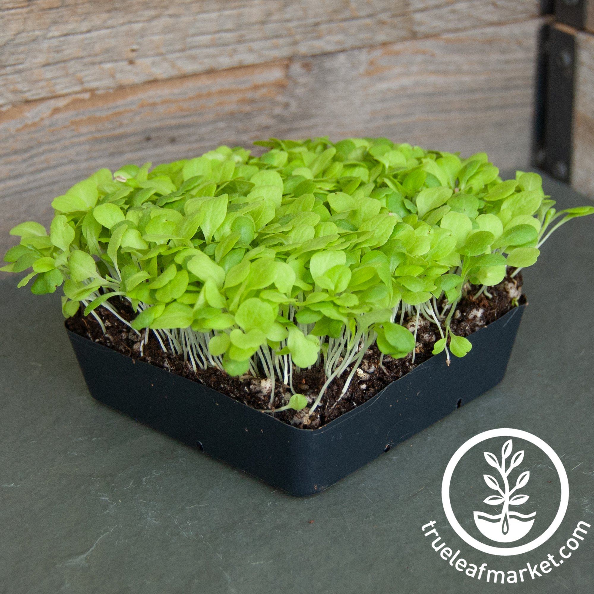 Lettuce Microgreens Seeds. Lactuca sativa. Non-GMO. Light green in color and mild lettuce / salad flavor. Can be grown as microgreens (harvest in 8 to 12 days) or seed more sparsely and harvest as baby greens (21+ days) Grow only in soil.