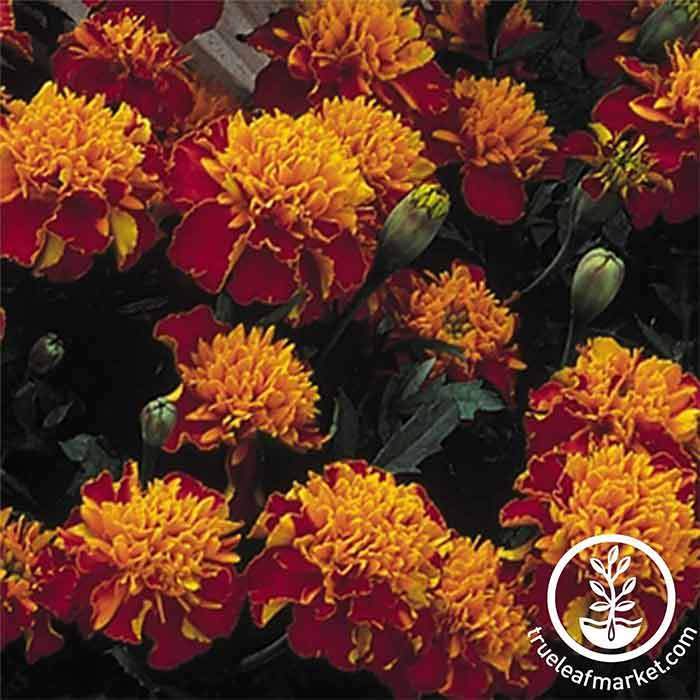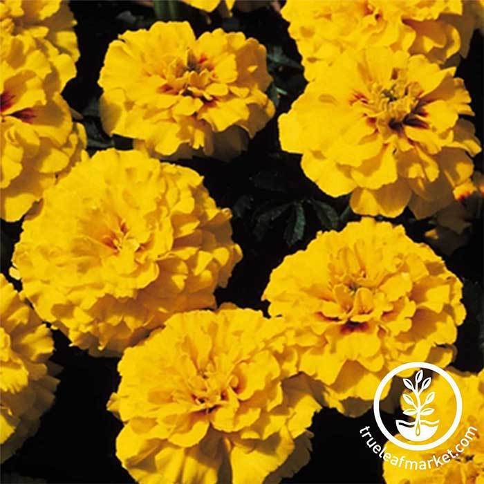 Janie Series marigold is a hardy full sun performer and most commonly sown directly after the frost but, for earliest blooms, begin seeds 6 – 8 weeks indoors prior to the frost. Marigolds will take 7 – 21 days to germinate in full lighting. Plant 2 – 3 Janie Series marigold seeds ¼” deep and 6” apart in average, evenly moist, and well-drained soil in full sun. Janie Series marigold is a vigorous full sun performer native to Mexico and known to tolerate gardens prone to heat, drought, and clay soils. Plants must be properly drained and ventilated are may be susceptible to powdery mildew, root rot, leaf spots, and Botrytis. Marigold has no serious pests but monitor regularly for spider mites and thrips. Janie Series marigold seeds mature in 56 – 63 days as semi-dwarfed 8 – 10” tall shrubby uprights with an 8” spread of 1½ – 2” blooms.