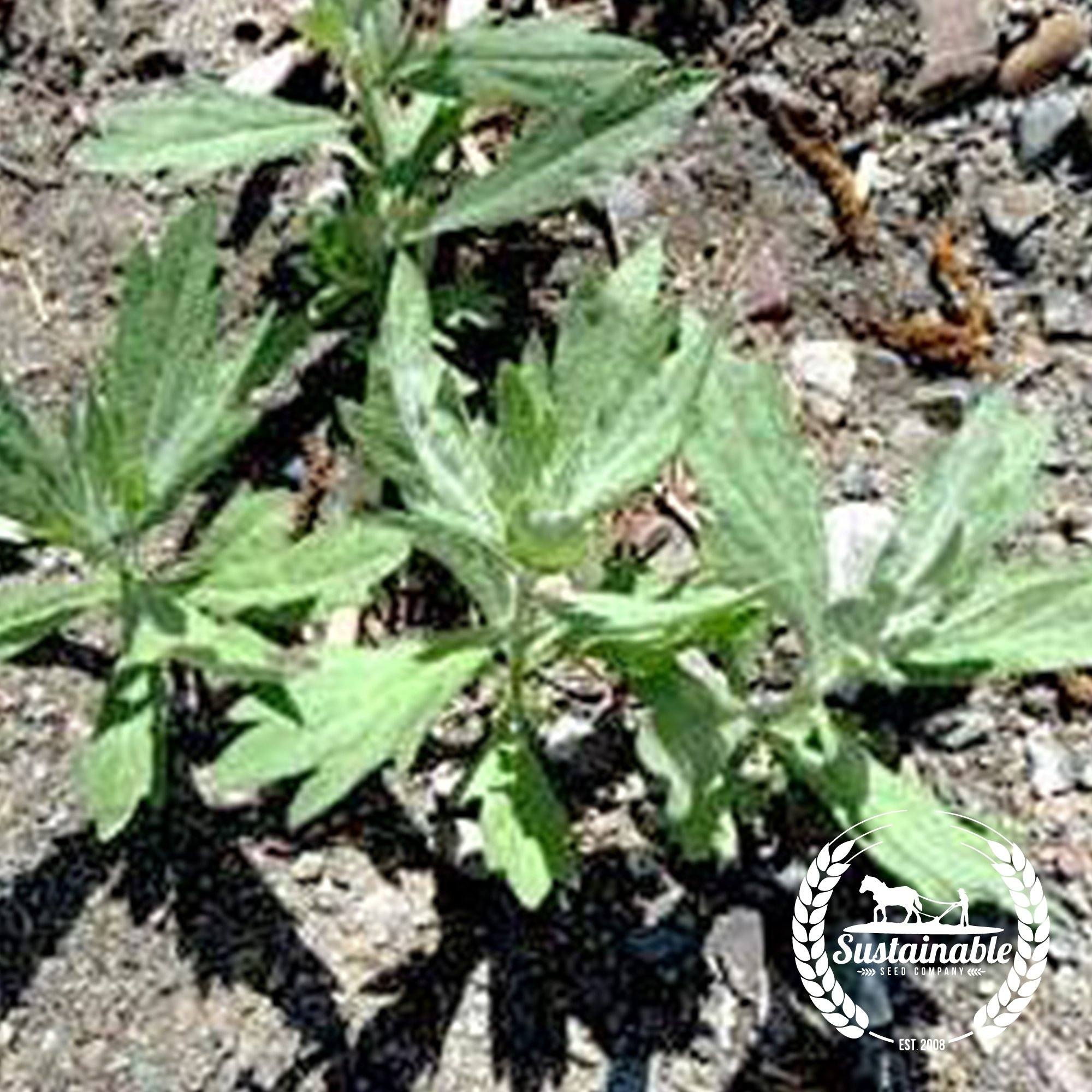 80 Days. Artemisia vulgaris. Open-pollinated. Non-GMO. Annual. Although known mostly as a tenacious garden weed in the midwestern United States, non-GMO heirloom mugwort seeds have been grown and foraged for hundreds of years as an essential medicinal herb. Native to arid and challenging gardens with poor soils, mugwort is a choice greenery to grow in open-pollinated xeriscaped gardens. As a culinary garden herb, mugwort is widely grown throughout the world to season meats, stews, soups, and dumplings. Annual mugwort seeds are experiencing a renaissance here in the states as a calming and soothing tea leaf used to aid in blood circulation, dreaming, and acupuncture treatment. Wholesale paper packets and bulk seeds available. ~317,800 seeds per ounce.