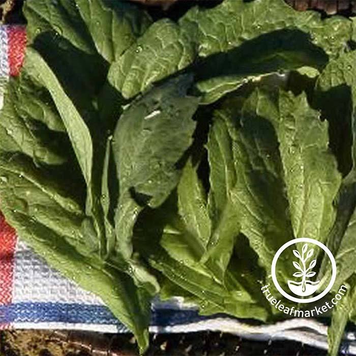 48 days. One of the first greens of the season. This 10 inch mustard has small, bright green, broad leaves with white midribs. A vigorous growing plant that is high in vitamins A, B and C. Approx. 17,000 seeds/oz.