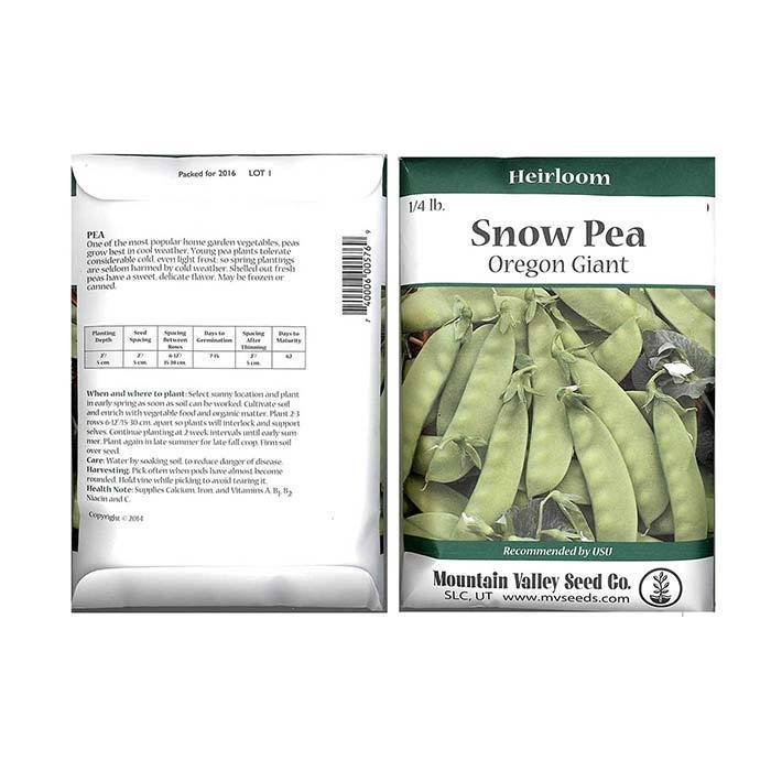 67 days. Premium 4-5 inch, sweet, mild, crunchy pod. The 26-30 inch vines need no support. Resistant to Powdery Mildew, Fusarium Wilt, and Pea Enation Mosaic Virus. Approx. 90 seeds/oz.