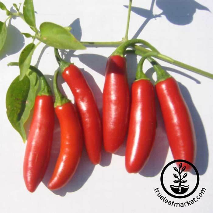 80 days. A very distinctive flavored hot pepper. This Serrano is not for the faint of taste but is one of the most popular along the Mexico border. The plant grows 30 to 36 inches tall and bears thin-walled, 2 inch long by 1/2 inch wide, slender fruits that turn red when reaching maturity. Prolific and ever-bearing. Scoville units: 5,000 - 23,000. Approx. 4,000 seeds/oz.