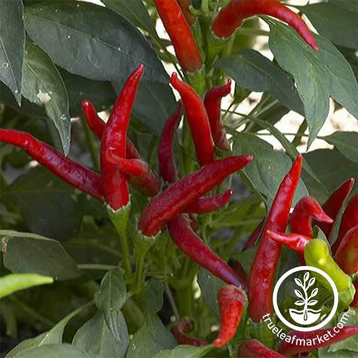75 days. AAS Winner. This super productive chili produces smallish, thin walled fruits measuring about 2 1/2 inches long by 1/2 inch across. It is not unusual for a single plant to produce as many as 300 peppers. Peppers ripen from light green to orange to red and can be used fresh or dried. Scoville units: 40,000 - 50,000. Approx. 4,000 seeds/oz.