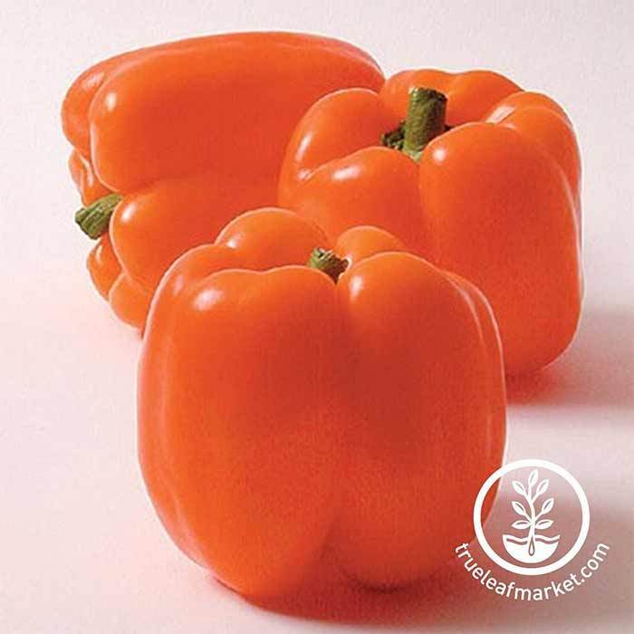 Horizon Orange Sweet Pepper Seeds - Capsicum annuum. AKA: Bell Peppers. Non-GMO & Heirloom seeds. 75 days. Produces 4 inch, blocky, thick walled peppers that ripen from green to bright orange. Colorful peppers are much in demand especially in the upscale fresh market. Approx. 4,000 seeds/oz.