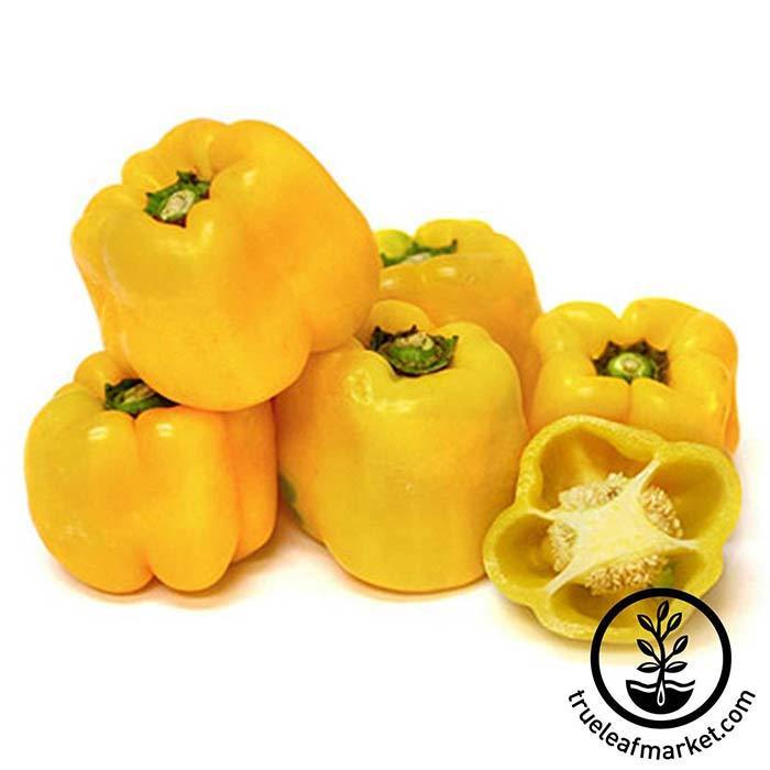 75 days. A nice large, blocky bell pepper that ripens from green to bright yellow at maturity. Good yield of sweet peppers, good in any stage of development.