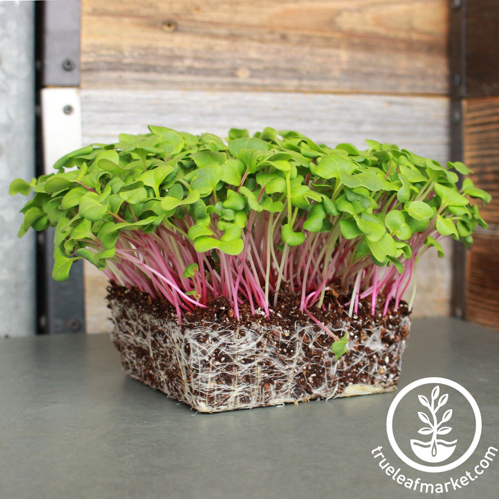 Triton Purple radish is fast and easy to grow. The microgreen is substantial and very crunchy. Due to its fast growth can be harvested as early as 5 days, assuming you have exposed to light on day 3. You can flip the lid a day before exposing to light to strengthen the crop.