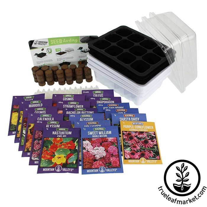 Start your own flower garden seeds indoors and get a jump on the growing season. Also perfect for transplanting to indoor planters for year-round container gardening. Cultivate your own stunning annual flowers to beautify your home and yard. Fresh flowers help attract pollinators like butterflys and bees. Seed Starter Kits make fantastic gifts. The Flower Starter Kit includes: Beautiful Giftable Box, trays, humidity dome, seed label sticks, compressed soil pucks (just add water), easy to follow instructions, and an assortment of flower garden seeds (enough for multiple plantings).