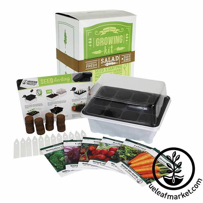 Start your own salad garden seeds indoors and get a jump on the growing season. Also perfect for transplanting to indoor planters for year-round container gardening. Cultivate your own fresh, lettuce and other salad vegetables and enjoy the fun and benefits of indoor gardening. Seed Starter Kits make fantastic gifts. The Salad Starter Kit includes: Beautiful Giftable Box, trays, humidity dome, seed label sticks, compressed soil pucks (just add water), easy to follow instructions, and an assortment of salad garden seeds (enough for multiple plantings).