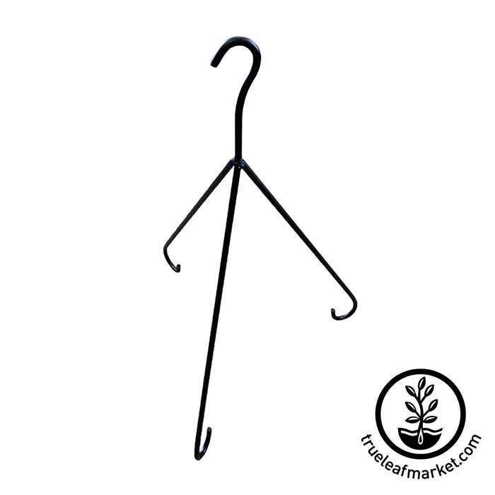 The Snap-on Hanger is designed to hang the 2-gallon, 3-gallon, or 4-gallon baskets. It is a rigid steel welded product, powder coated black. The three bottom hooks "snap" over the rim of the Bloom Master basket providing a sturdy, simple, and clean look for your hanging baskets. The top is completed with a rigid hook to hang from rods, eyelets, other hooks, etc.