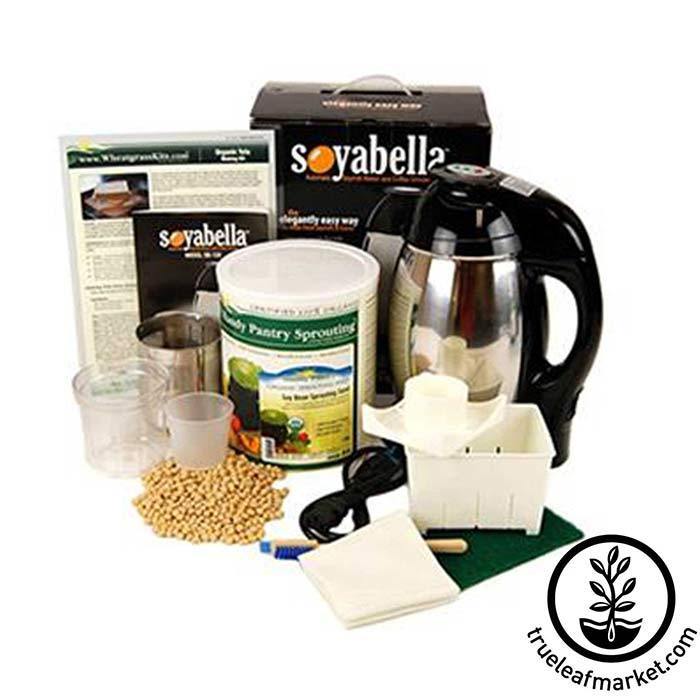 Complete solution for making soymilk & tofu. Includes Soyabella soymilk maker, tofu making kit and 5 lbs. of organic yellow soybeans. Make soymilk for less than $0.70 / quart and tofu for pennies / serving. Certified Organic Soybeans.