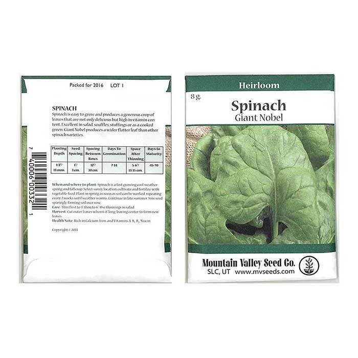 46 days. An heirloom spinach with giant leaves that can spread up to 25 inches. Slow to bolt, excellent for canning. Smooth, large, dark green leaves are an old time favorite. Approx. 2,500 seeds/oz.
