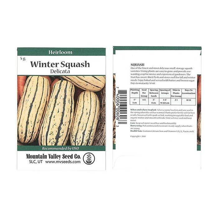 100 days. This is one of the tastier winter squashes with creamy pulp that tastes a bit like sweet potatoes, hence the other common name, 'Sweet Potato Squash'. Elongated fruit are 7 to 10 inches long, pale cream in color with green stripes and flecks. Thinner skin than some other winter squashes reduces the storage potential to about a month, but oh what flavor!
