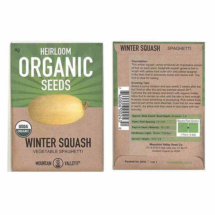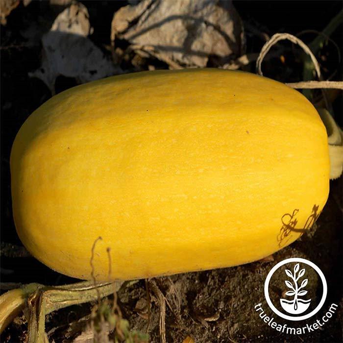 80-100 days. Recommended by USU. Harvest when 8 to 10 inches long. Spaghetti-like pulp can be removed easily with a fork after boiling in shell for about 30 minutes. Also bakes well. Approx. 190 seeds/oz.
