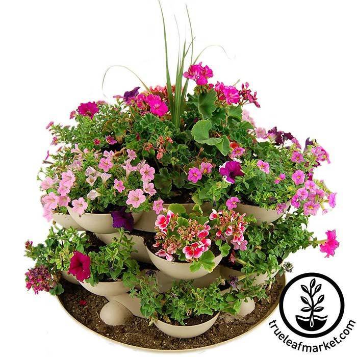 Amazing stackable, self watering garden planter for vertical gardening, growing herbs, flowers, strawberries, cactus and house plants. Holds up to 20 plants. Great for indoors, or outdoors. Combine multiple Stack & Grows to stack taller.