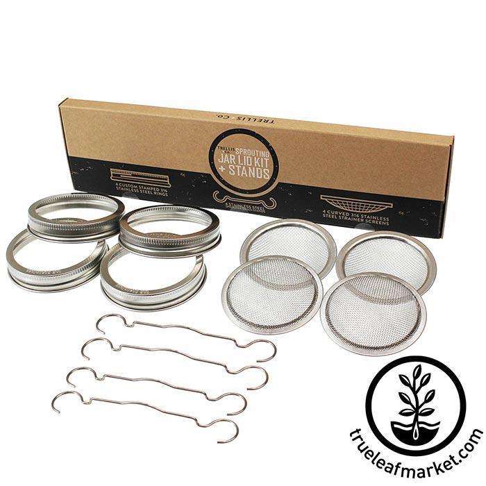 - 4 PACK w/STANDS INCLUDES: 4 Wide Mouth Stainless Steel Rings, 4 Heavy Duty Stainless Steel Curved Strainer Screens, 4 Sprouter Drain Stands, Instructions, Free Downloadable Sprouting Guide - 100% Satisfaction Guarantee