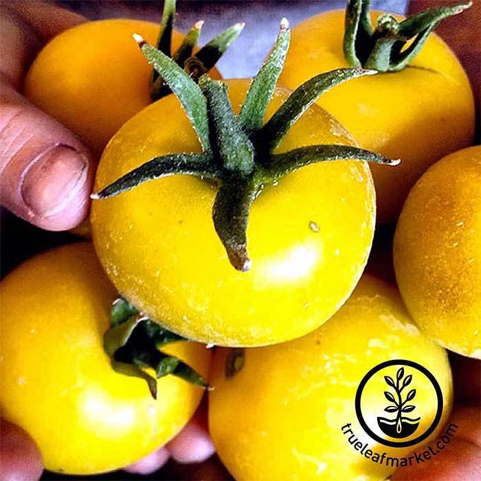72 days. These 7 ounce tomatoes feature unique, lemon yellow skin. Smooth, high quality fruit are produced on vigorous, indeterminate vines. V, N, F, A. Approx. 10,000 seeds/oz.