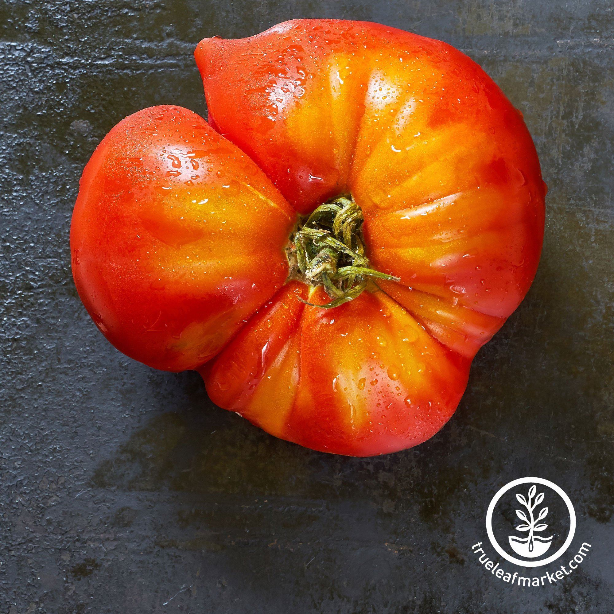 Flame Tomato Seeds. 85 Days. Non-GMO, Heirloom, Open Pollinated. Solanum Lycopersicum. Originated from West Virginia in the 1880s. Red with yellow and orange streaks.