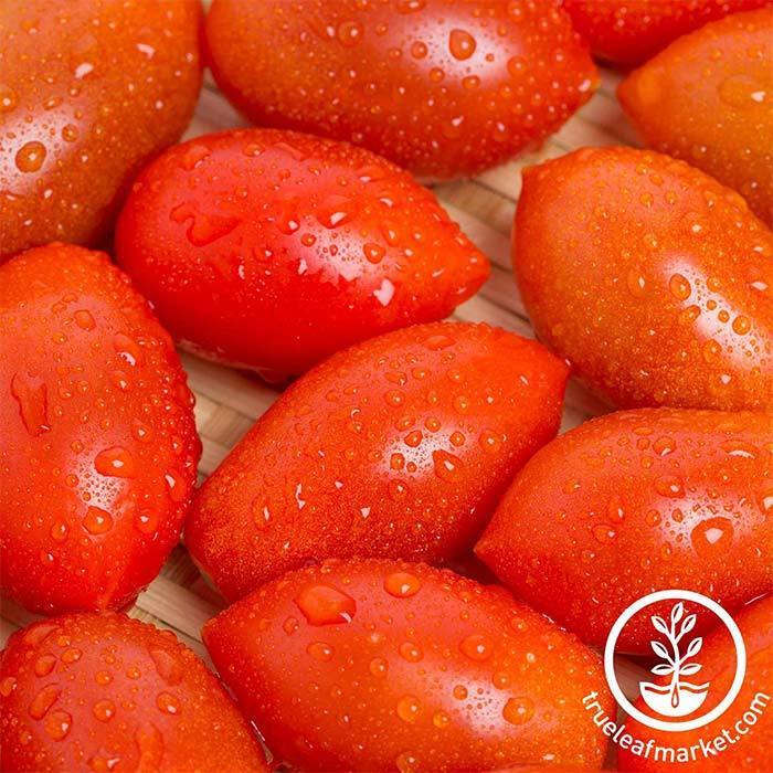 60 days. AAS Winner for 2005. These half-ounce dark pink fruit have a sugar content of 9.5%, higher than most other tomatoes. The fruit is produced in cluster like grapes, and are a distinct shape; oval with a pointed blossom end. Vigorous semi-indeterminate vines produce high yields of sweet, tasty little tomatoes. Approx. 10,100 seeds/oz.