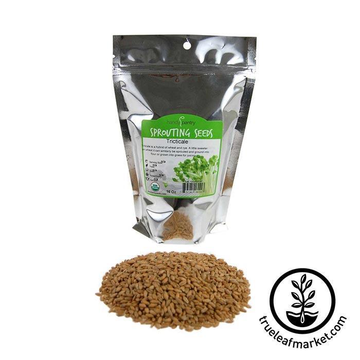 Triticale is a hybrid of Wheat (Triticum) and Rye (Secale). Triticale seeds were developed as a hybrid less than a hundred years ago, bred in an effort to solve world hunger. Triticale is a little sweeter than wheat and can be sprouted, ground into triticale flour, or grown into triticale grass for juicing. Triticale is hardy, easy to sprout and grow and is very nutritious. Makes a great grain to store as emergency food storage.