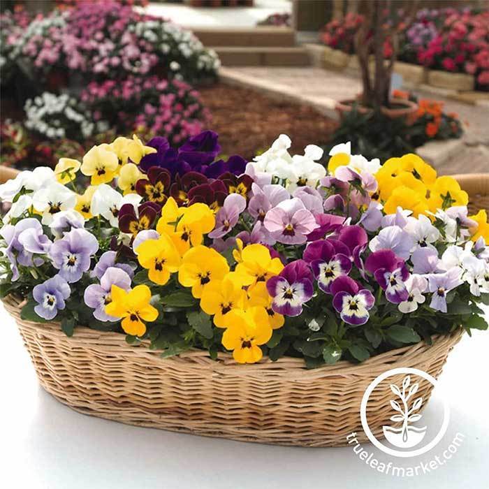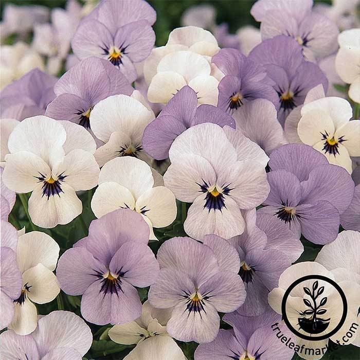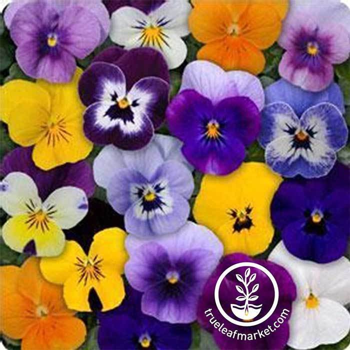 91 – 98 days. Sorbet Series seeds grow year-round violas in your home or garden when others can not. Often planted as annuals, Sorbet Series viola seeds are perennials that grow to be hardy, cold-tolerant, and thrive in a wide range of temperate North American climates. Sorbet Series viola seeds grow compact, yet durable 6 – 8” tall mounds of spectacular color ideal for indoors, hanging baskets, or as a potted gift. Sorbet Series violas are an edible flower used by professional chefs as an aromatic accent or garnish to salads and other savory meals. 100 seeds.