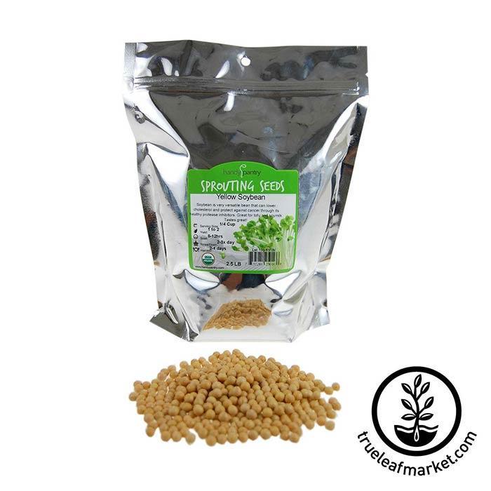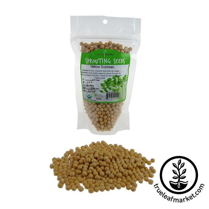 Soybean sprouts are delicious in soups and salads and add a great fresh raw source of protein to your diet. Organic Yellow Soybeans are also great for making tofu, soymilk, and a great high protein addition to food storage. Available in small quantity to bulk. ~175 Seeds / Oz. Certified Organic.